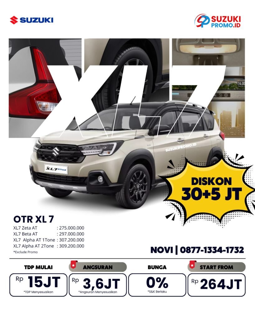 New XL7 hadirkan ruang yang lapang, dilengkapi tempat duduk yang nyaman hingga bagasi yang lapang. Hadirkan energi baru untuk menjelajah lebih jauh bersama keluarga.